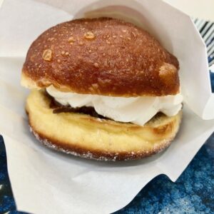 ふんわりとした生地に、卵黄をふんだんに使った濃厚な自家製カスタードクリームがぎっしり入っています。ずっしりと重みがあり、食べ応えもしっかり。シンプルですが飽きのこないロングセラーです。