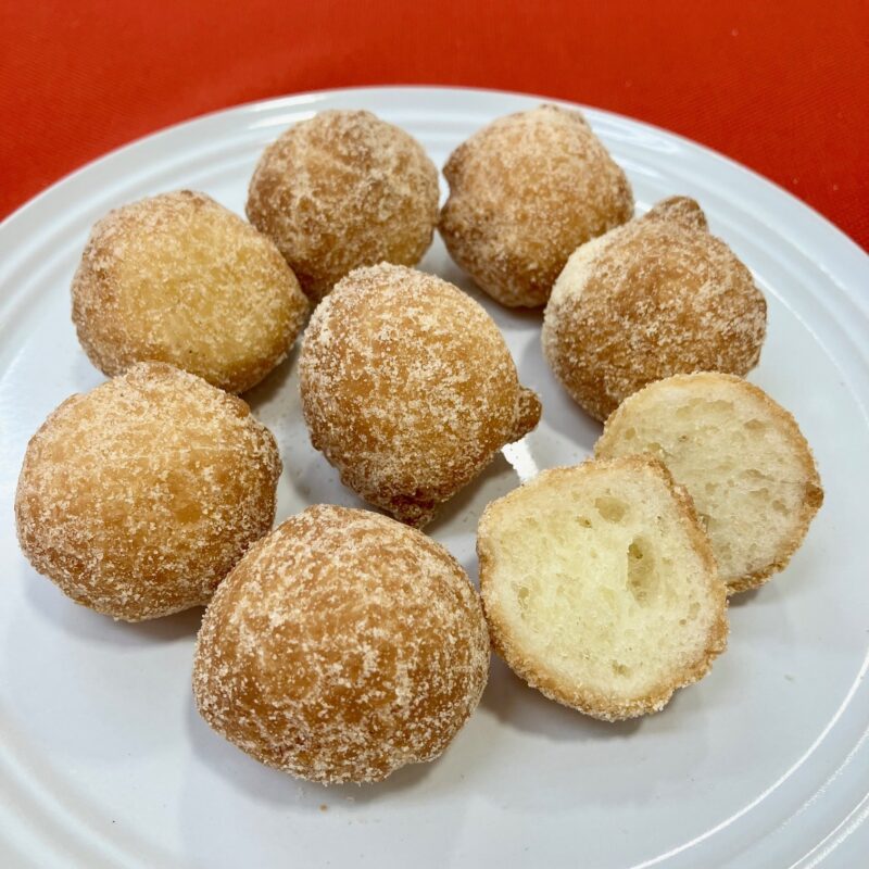 きな粉をまぶしたひと口大の揚げパンは、生地にでんぷん粉を加えてもちもち食感を引き出しています。優しい甘さで、ついつい手が出るおいしさ。どこか懐かしい味わいの人気商品は、おやつにぴったりです。