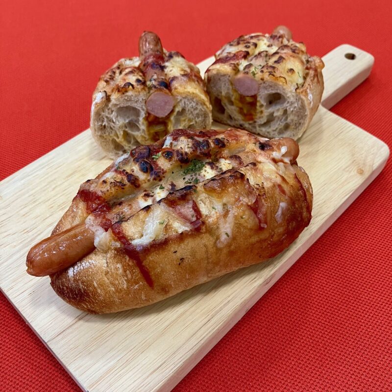 全粒粉を2割ほど配合し、天然酵母で発酵させたハード系で、粗びきのウインナーソーセージとキャベツ入りカレーフィリングを挟んでいます。キャベツの甘みがしっかりと感じられ、食べ応えも十分。豪快に召し上がれ。