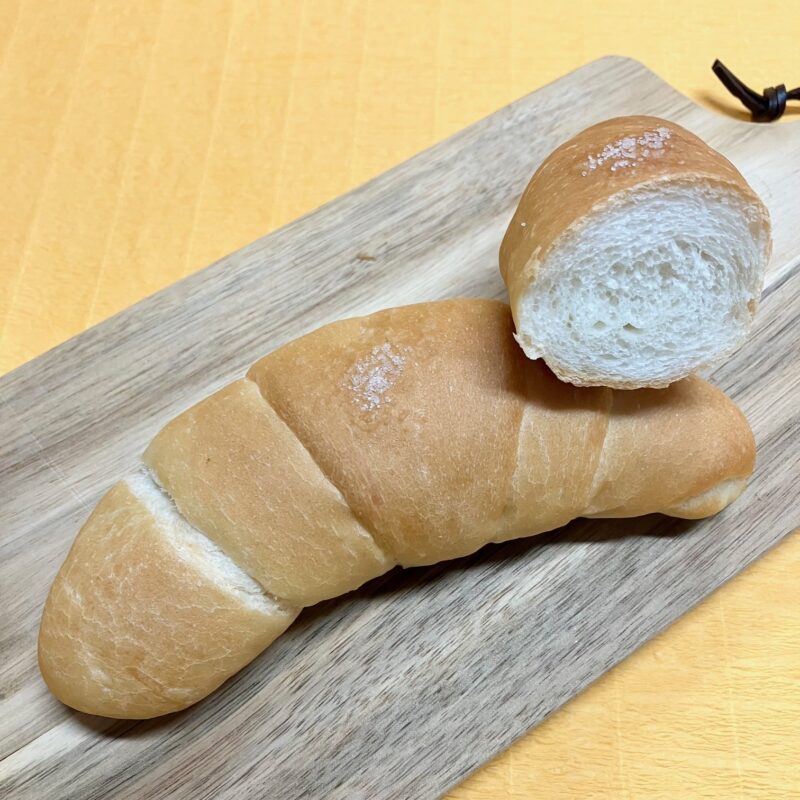 北海道産バターを使ったセミハードタイプの塩パン。焼成中に溶け出したバターで底はカリカリに。中はもっちり、外はサクサクで3つの食感が楽しめます。トッピングされたフランス産岩塩がアクセントの人気商品です。