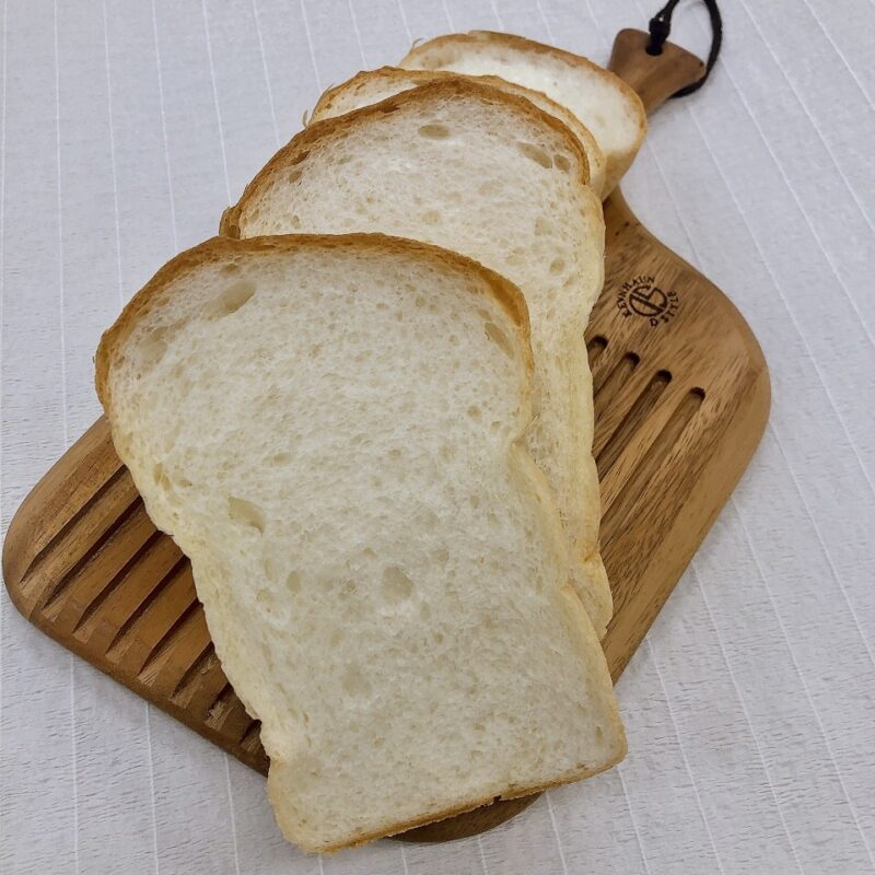 乳化剤、保存料、イーストフードなどの添加物は不使用。長時間発酵の中種法によるしっとりとした軟らかさが翌日まで続きます。ふわっととろけるような食感で、かむほどにほんのりとした小麦の甘みが感じられます。