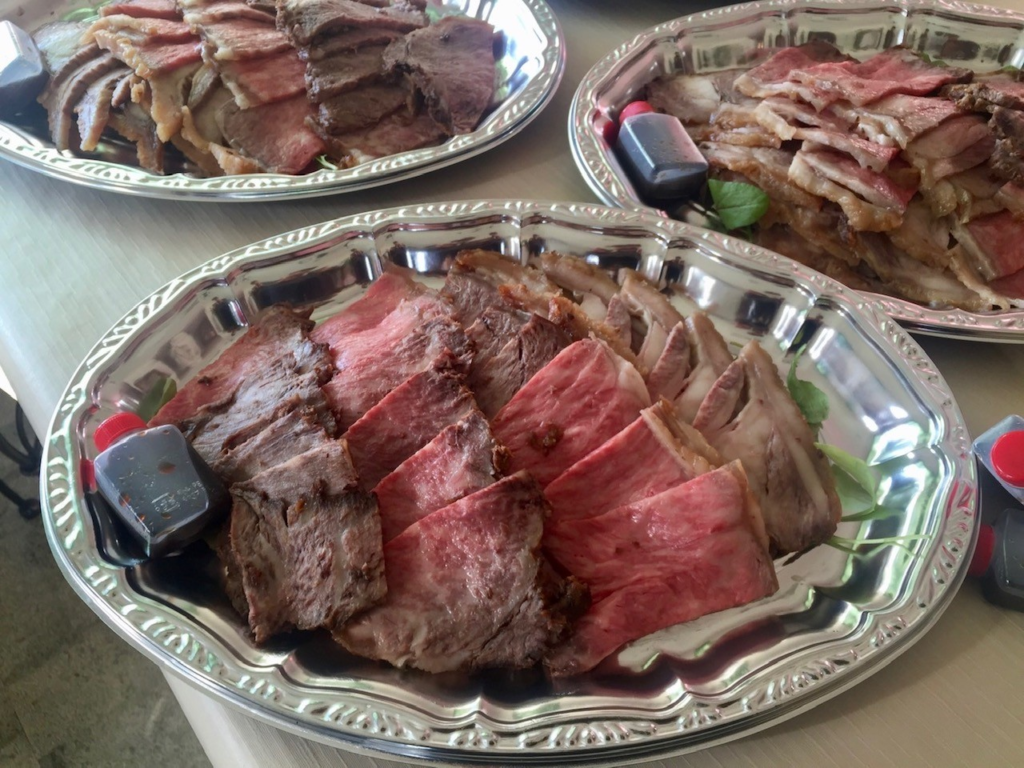 淡路ビーフのサーロインを豪快にカットしたローストビーフ(5~10人前1万2,500円)も人気。