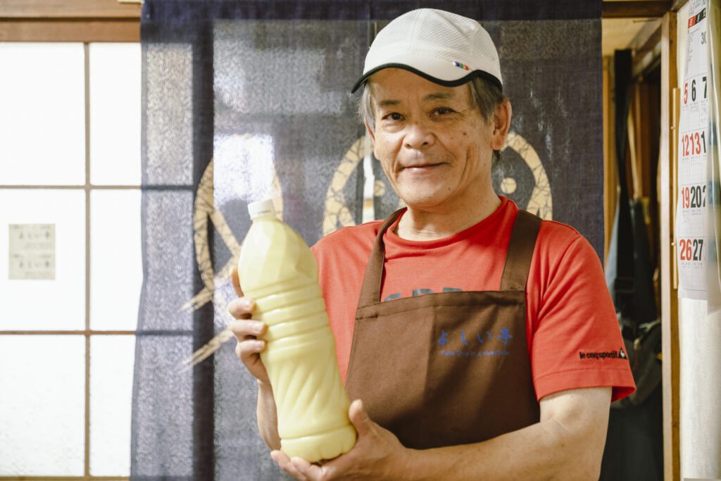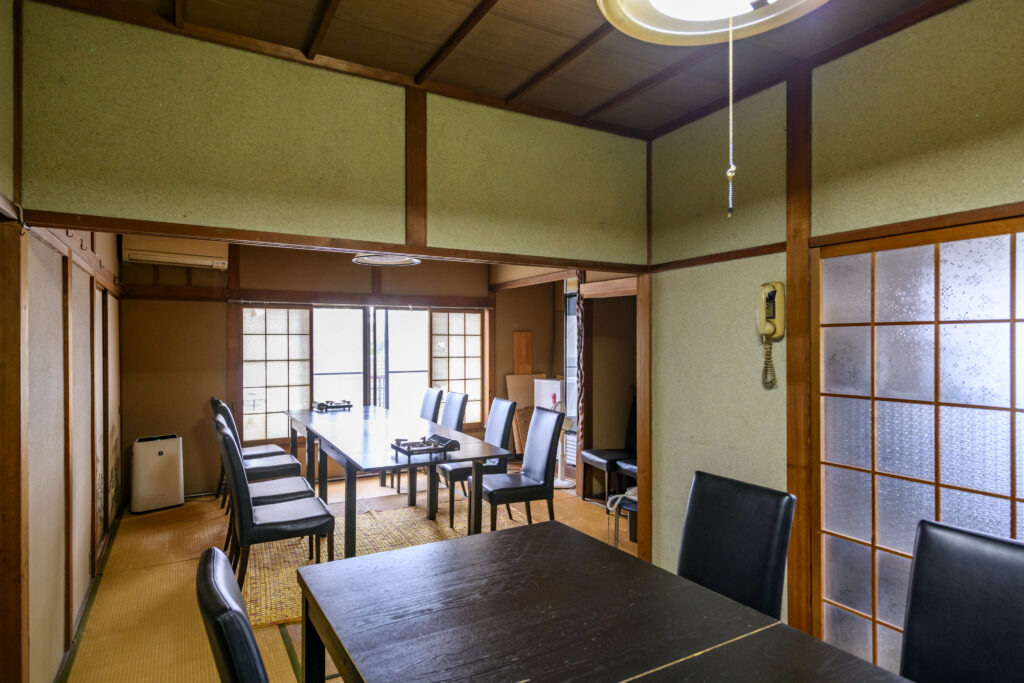 神戸市長田区、下町の一軒家の玄関脇には木の手作り看板。引き戸を開けると店主の芳井寛さんが笑顔で出迎えてくれます。靴を脱いで店内へ。元は居間だった室内に、掘りごたつ式のテーブルが並んでいます。