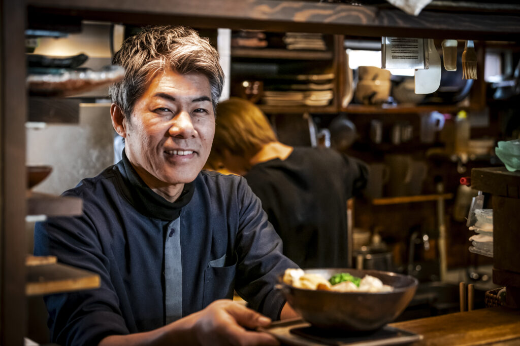 その後改良を重ねる中で、2010年に専門店としてオープン。試作から約20年をかけ、具材にあらかじめ下味を付けておき、注文が入ってから特製塩おでんつゆを加えて提供する現在の調理法にたどり着きました。「つゆは、丹波地鶏のガラ、鹿児島県枕崎産かつお節、北海道産真昆布、いりこを合わせただしに赤穂の塩を加えたもの。具材に下味を付けるためのだしとは少しブレンドを変えることで、味に深みが増します」と小田さんは話します。