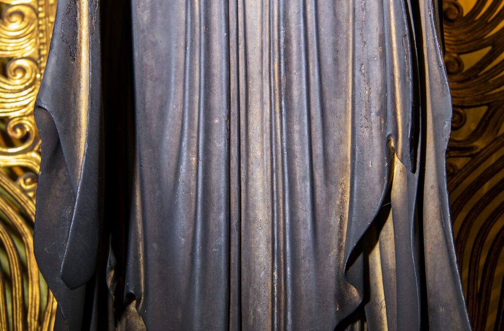 明徳寺の阿弥陀さまも、特別公開時は通常より近くから拝観できます。国の重要文化財を至近距離で見ることができる年に1度のチャンス。金の極細線で施された文様、表情をつくる眉や目などのパーツ、幾つもの曲線で形成された衣紋など、彫刻作品としての素晴らしさを堪能しましょう。
