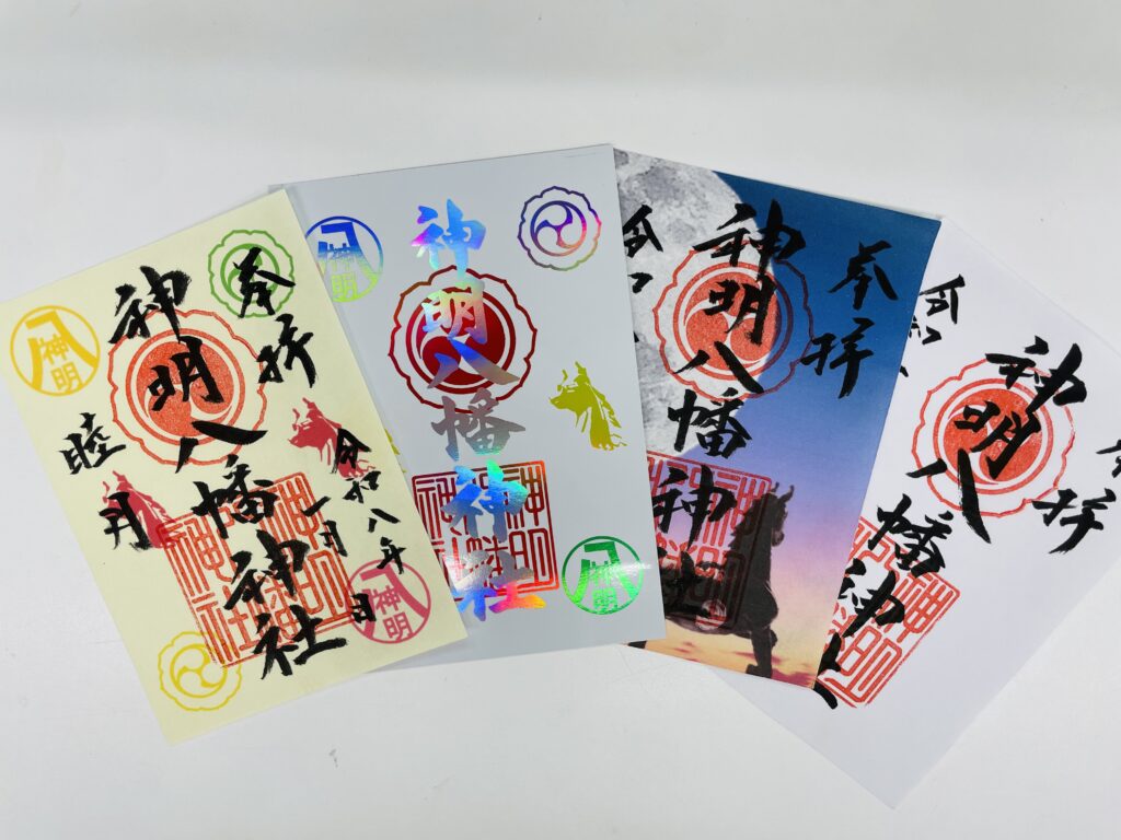 馬はご朱印にも登場します。50種近くある多彩なラインアップのうち、馬のシルエットが印刷された「月替わり御朱印」や「レインボー御朱印」、大きな月と馬が描かれた「月と馬御朱印」などがあります。また、参拝時に撮影した境内の写真をメールで送れば、それを背景にしたオリジナルのご朱印を作ってもらえるので、神馬像を好きなアングルで撮影した写真を使って自分だけのご朱印にするのも一興です。