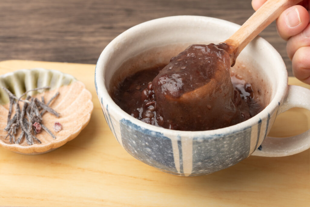 わらび餅と粒餡がとろける新食感ぜんざい