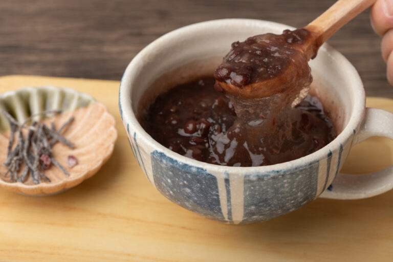 宝塚市の清荒神の参道にある「わらび餅専門店 清香」では、冬季限定でぜんざいを提供しています。本わらび粉を使用したわらび餅に甘さ控えめの粒餡を合わせたぜんざいは、喉越しが良く食べやすいと世代を問わず好評です。