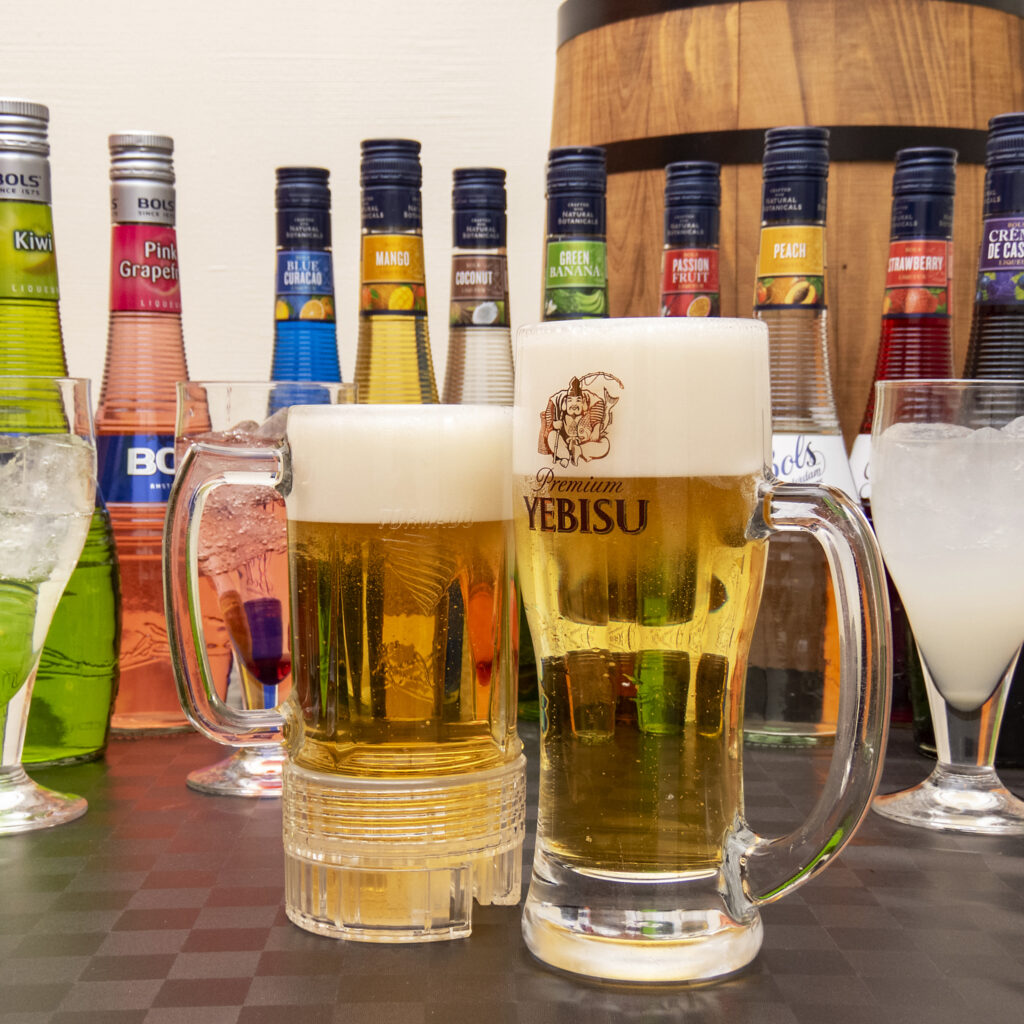 ドリンクは国内メーカー3種のビールをはじめ、ウイスキー、サワー、ワインなど約40種の豊富なラインアップ。お酒好きも満足すること間違いなしです。