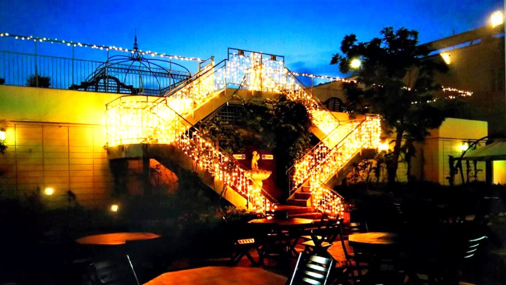 10階の屋外席。階段を上ると11階屋上テラス「山の見える広場」へ。