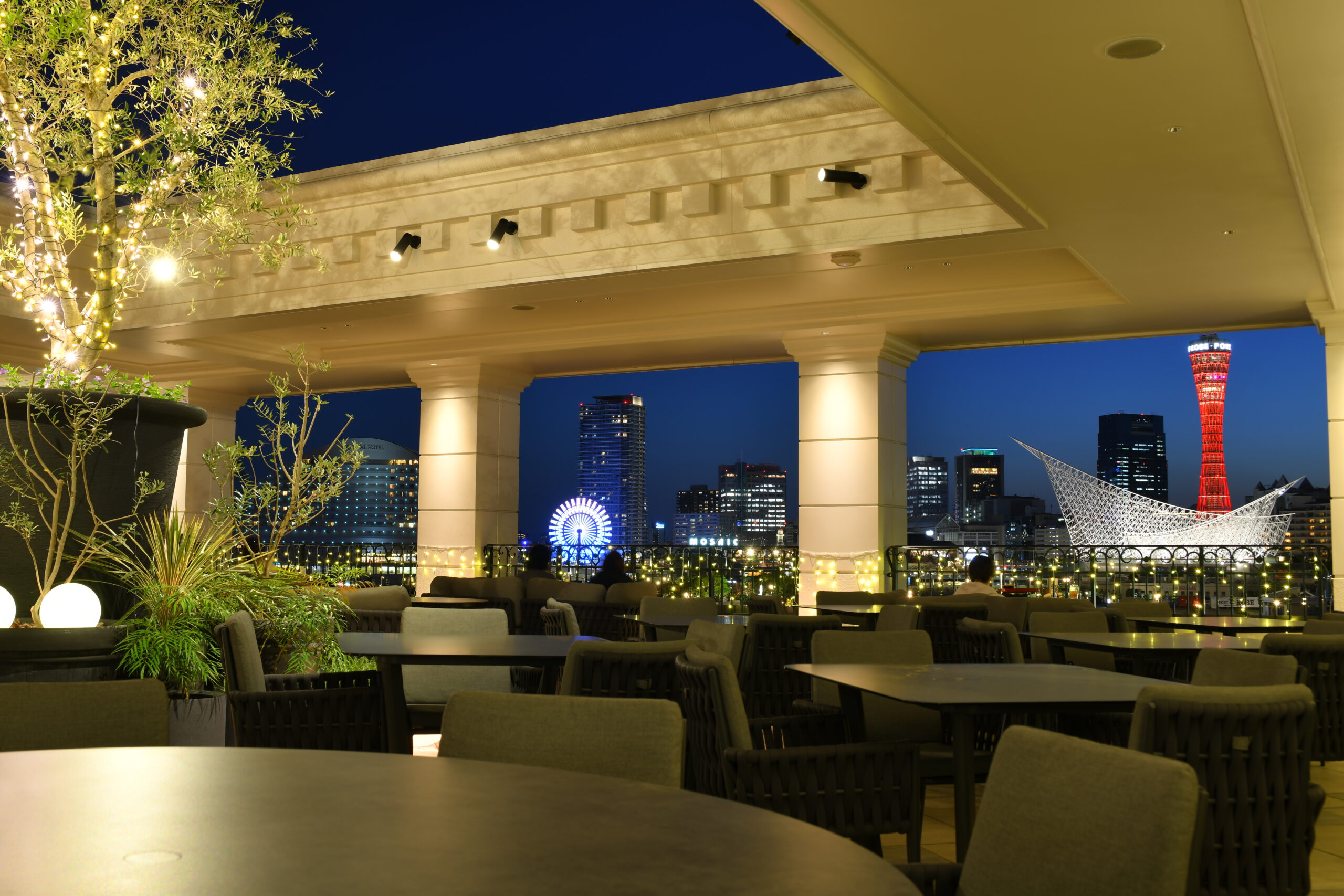 絶景のテラスで牛・豚・鶏肉の料理を堪能(ルーフトップ レストランバー エス神戸)